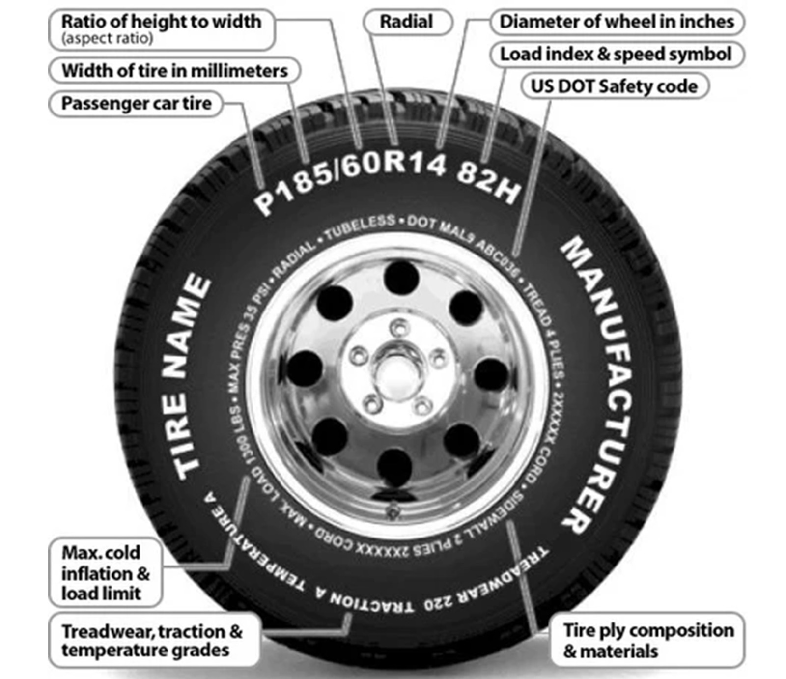 When looking for tires, pay attention to tire size, load index, speed rating, and treadwear. Tire size is typically expressed with numbers and letters, indicating width, aspect ratio (sidewall height), rim diameter, and construction (radial or bias-ply). Load index represents the maximum weight the tire can safely carry, while speed rating indicates the tire's maximum speed capability. Treadwear ratings, found on the tire sidewall, provide an estimate of how long the tire will last.